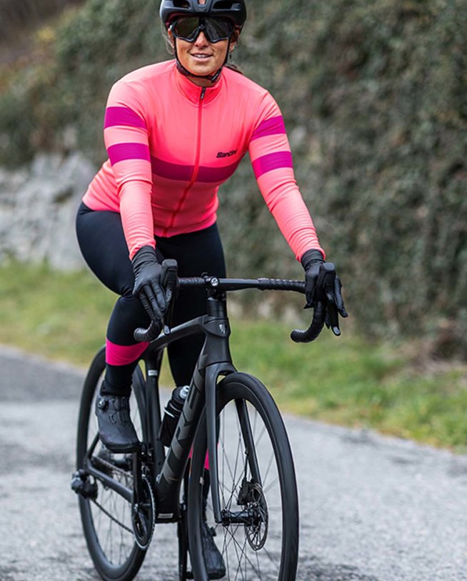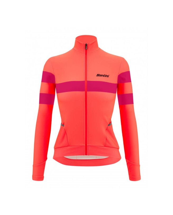 Kolesarski dres z dolgimi rokavi zimski Santini CORAL BENGAL LADY rožnata