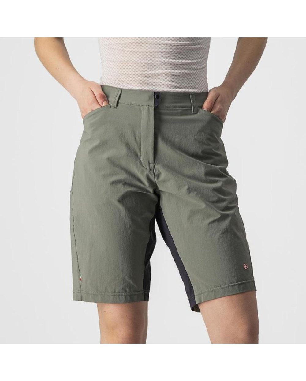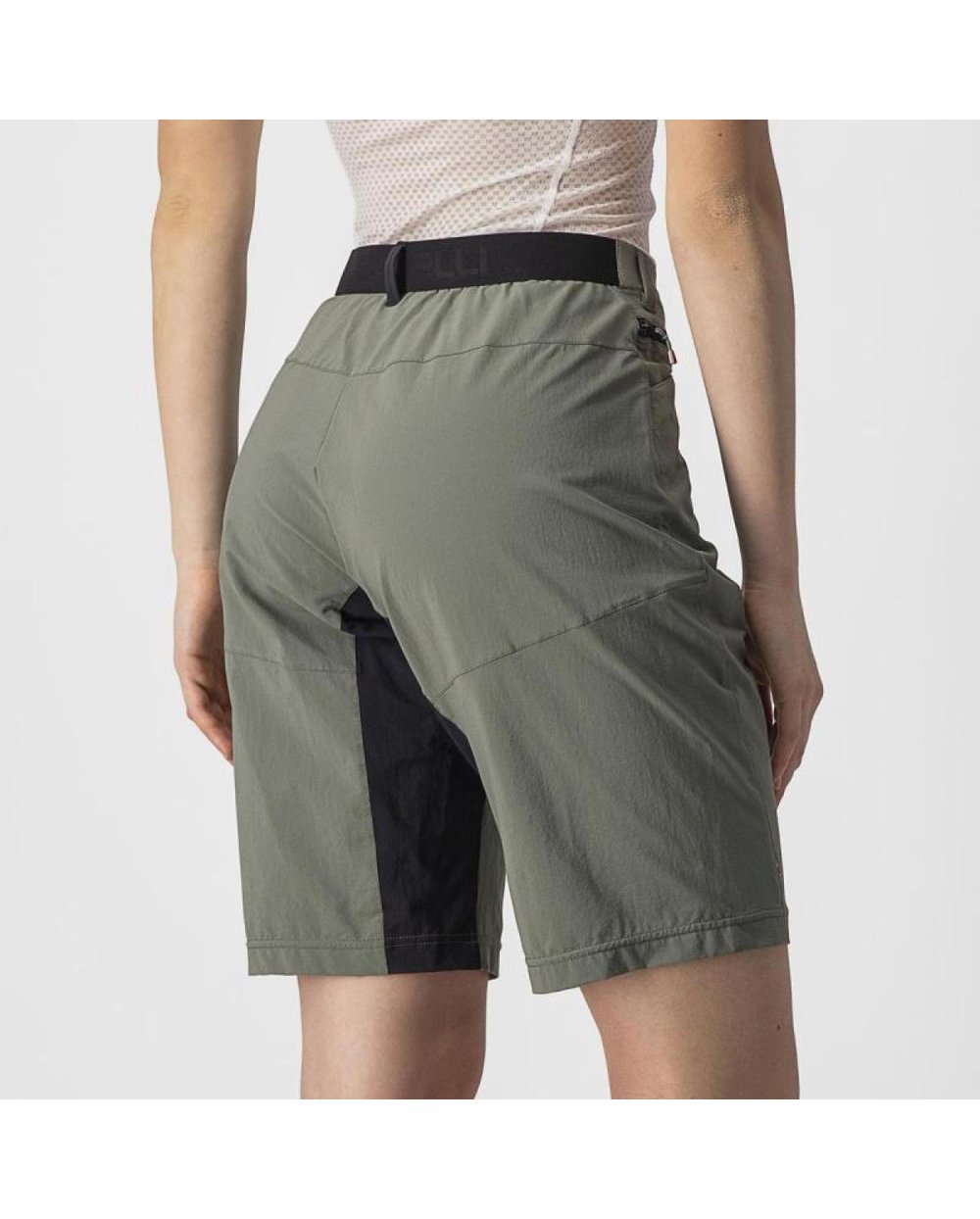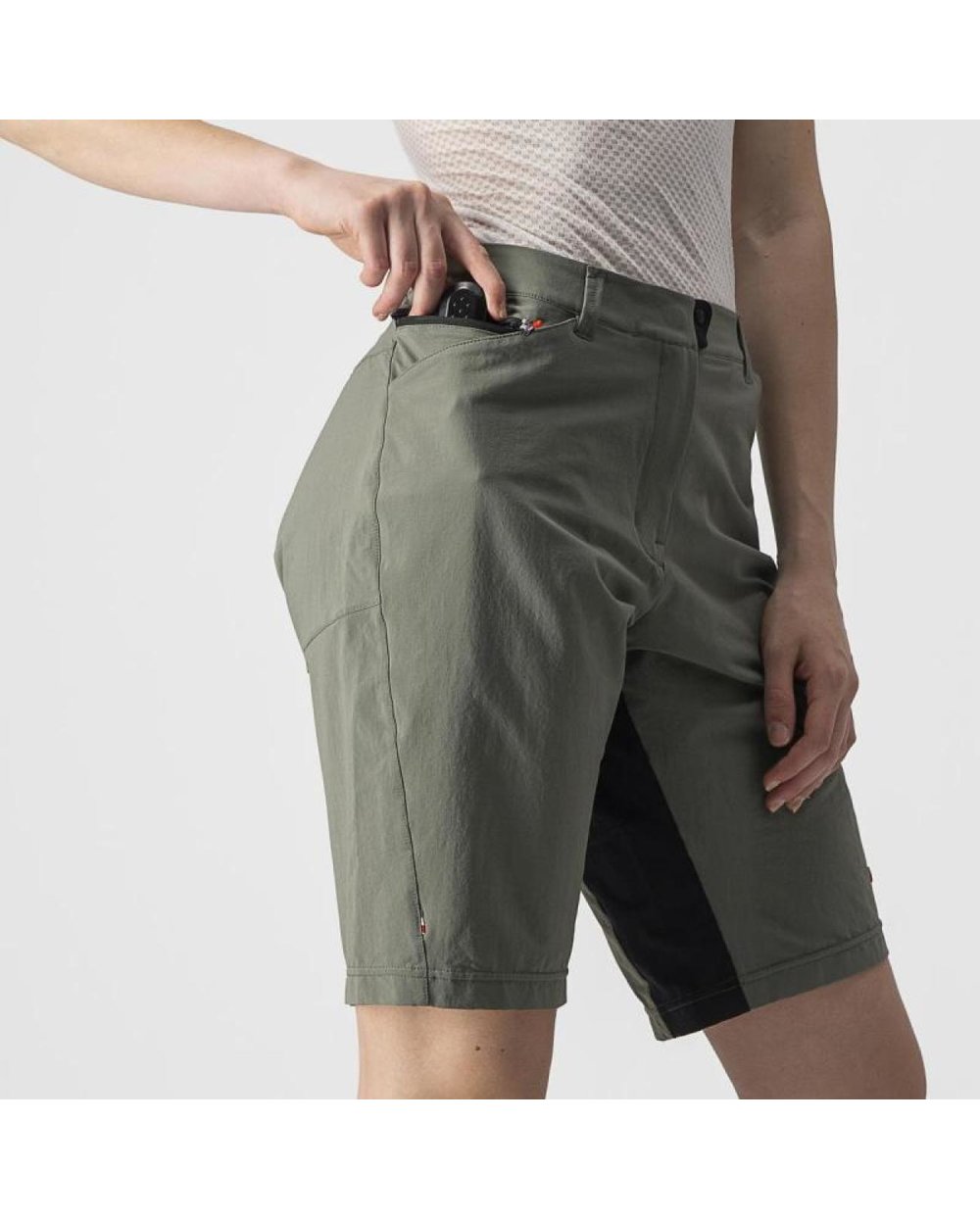 Segli smo po raztegljivi tkanini, ki je hkrati izjemno lahka in trpežna. Obdelali smo jo z obdelavo DWR, da se nanjo ne bi lepila voda in blato. Dodali smo dva zgoraj dostopna žepa kot pri kavbojkah, tako da nič, kar boste dali vanj, ne bo padlo ven. Kroj smo naredili dokaj prilegajoč se telesu, da ste dobro videti brez kolesa, med vožnjo pa niste videti kot izpraznjen balon. Kratke hlače nimajo podloge po meri, zato lahko pod njimi nosite svoje najljubše raztegljive hlače CASTELLI.