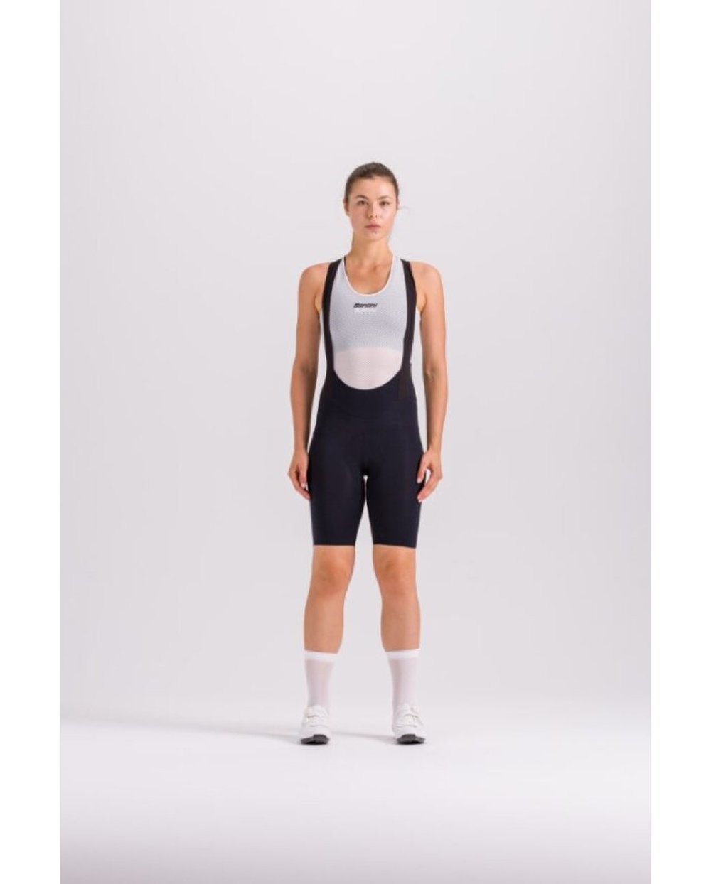 Ženske kratke hlače Santini Plush z naramnicami so idealna rešitev za udobno in učinkovito vožnjo na srednje dolgih do dolgih poteh. Model z italijansko tkanino Premium Fit, ki je neverjetno raztegljiva, zelo kompresivna in mehka na otip, vam bo zagotovil maksimalno udobje. Kratke hlače so izdelane iz recikliranega poliamida z matiranim zaključkom, zato so videti čiste in elegantne. Brezšivni elastični sprednji šlemi se prilegajo telesu, medtem ko izjemno lahka in raztegljiva mrežica na zadnji strani zagotavlja popolno zračenje. Kratke hlače se ponašajo tudi z notranjimi nedrsečimi oprijemali na nogah, ki jih med pedaliranjem trdno držijo na mestu. V kratke hlače je všita podloga GILevo z gelskim jedrom, ki enakomerno in postopno absorbira udarce. Za boljšo vidljivost so kratke hlače opremljene z odsevnimi podrobnostmi na zadnji strani stegen.