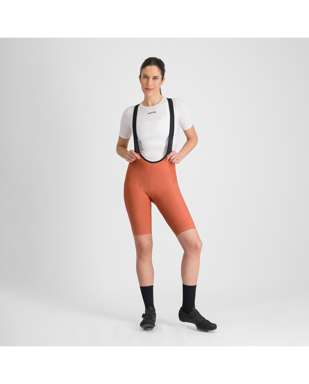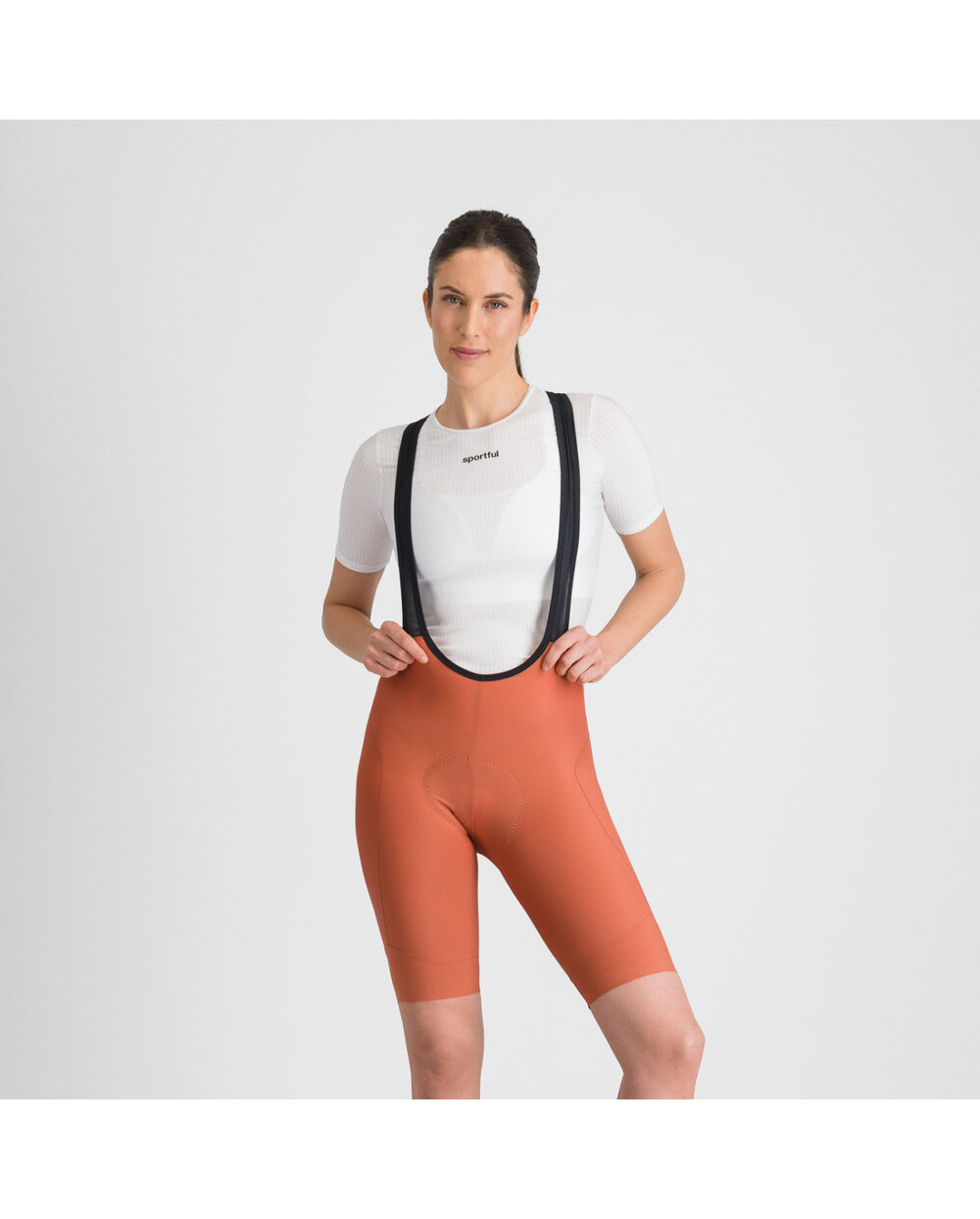 Kolesarske kratke hlače z naramnicami - oranžna
