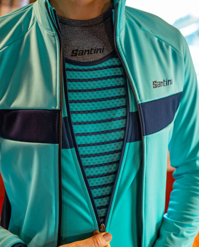 Kolesarska podaljšana jakna Santini CORAL BENGAL LADY turkizna