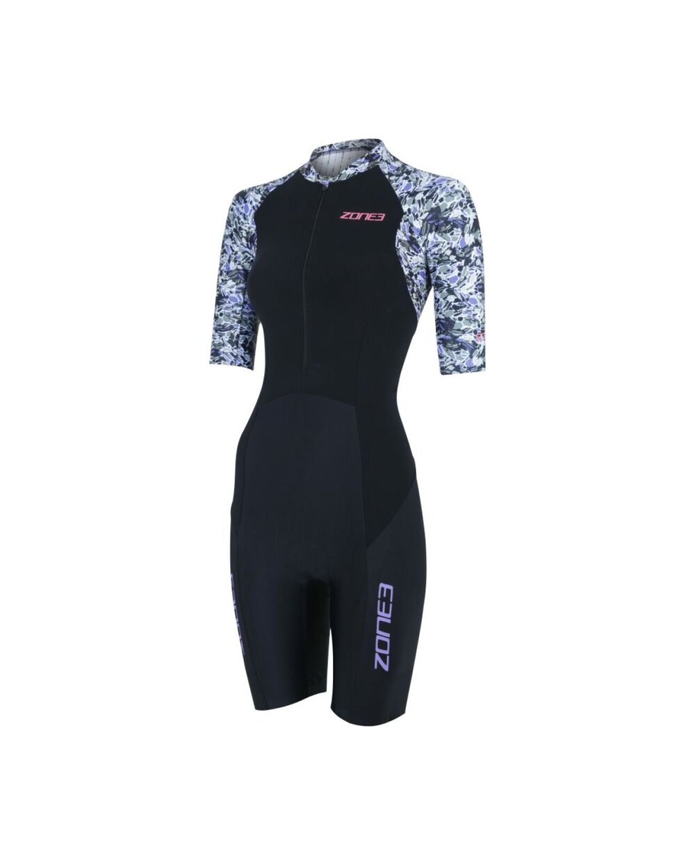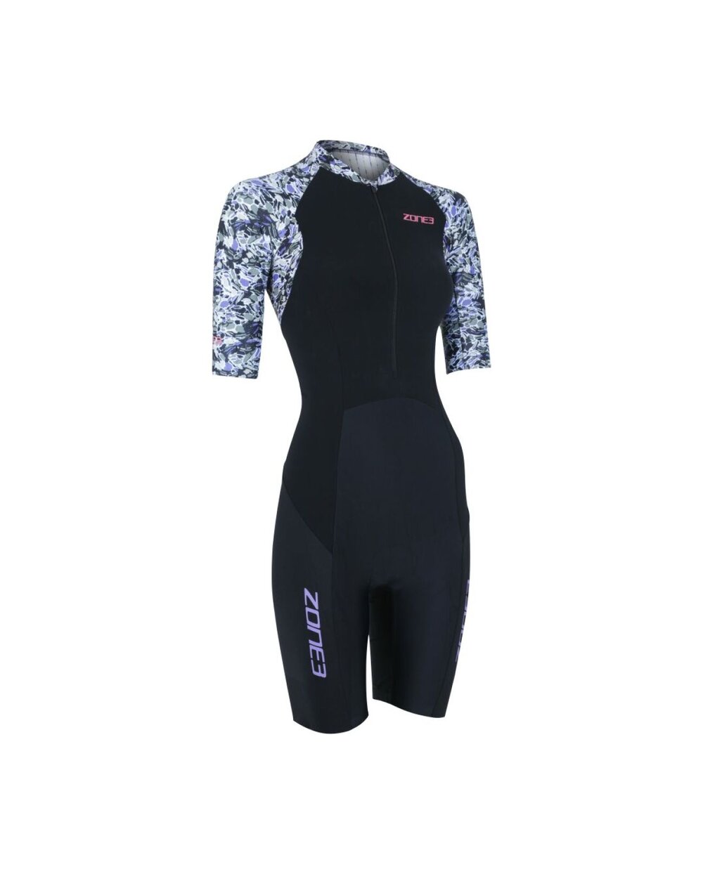 Zone3 Lava Short Sleeve Trisuit je vrhunska ženska triatlonska obleka, zasnovana za zahtevne tekme in daljše treninge. Ta model prihaja iz nagrajene kolekcije Lava, ki je rezultat dolgotrajnega razvoja in testiranja v vetrovniku in med profesionalnimi športniki. Lava trisuit združuje napredne aerodinamične plošče, vodoodbojne obdelave in tehnične materiale, ki skupaj izboljšajo zmogljivost v vseh treh disciplinah – plavanju, kolesarjenju in teku.