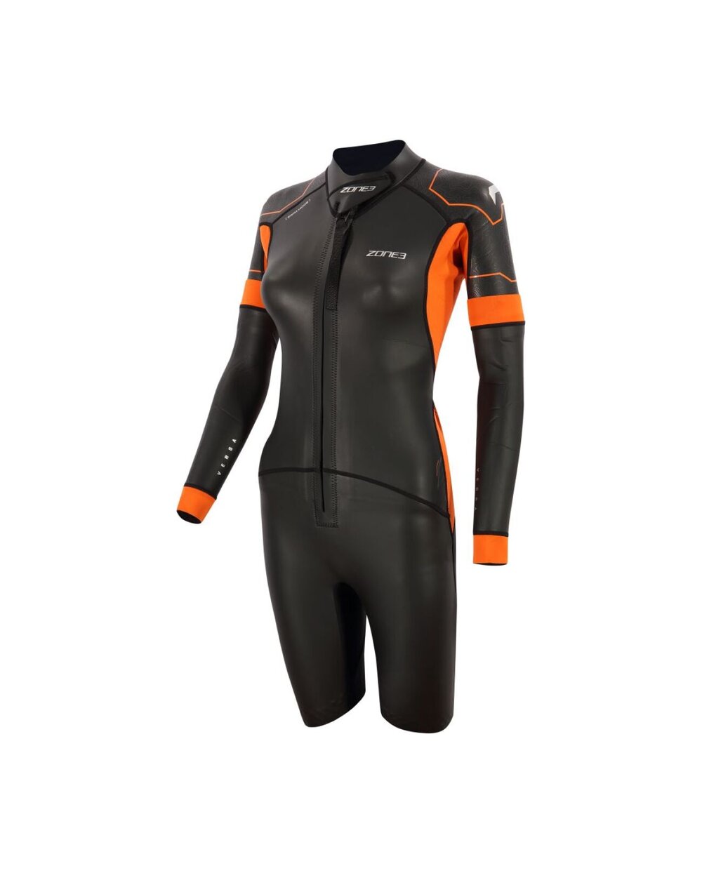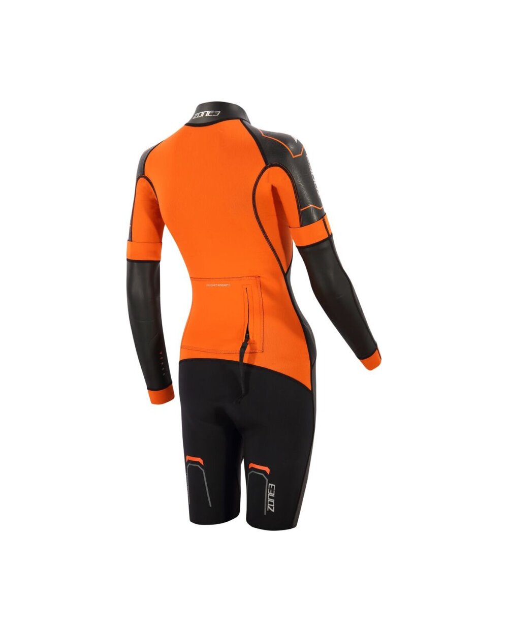 Zone3 Women's Versa Swimrun je vsestranska ženska neoprenska obleka, zasnovana posebej za disciplino swimrun, kjer se plavanje in tek gladko izmenjujeta. Obleka nudi idealno ravnovesje med prožnostjo, toplotnim udobjem in vzdržljivostjo, zaradi česar je primerna tako za začetnike kot za napredne športnike. Kombinacija naravnega kavčuka Yulex® in neoprena Speedflo zagotavlja dobro fleksibilnost, bolj ekološki pristop pri izdelavi ter hkrati zmanjšan vodoodpor za učinkovitejše plavanje. Sprednja zadrga omogoča hitro oblačenje in enostavno regulacijo temperature med tekom ali prehodi, kar je pri swimrunu ključnega pomena. Krajši kroj rokavov skupaj z možnostjo dopolnitve z odstranljivimi vložki omogoča prilagajanje obleke trenutnim razmeram. Praktičen element so integrirani žepi, ki zagotavljajo dovolj prostora za shranjevanje energijskih gelov ali manjše obvezne opreme. Krepki oranžni detajli povečujejo vidljivost v odprtih vodah in prispevajo k varnosti.