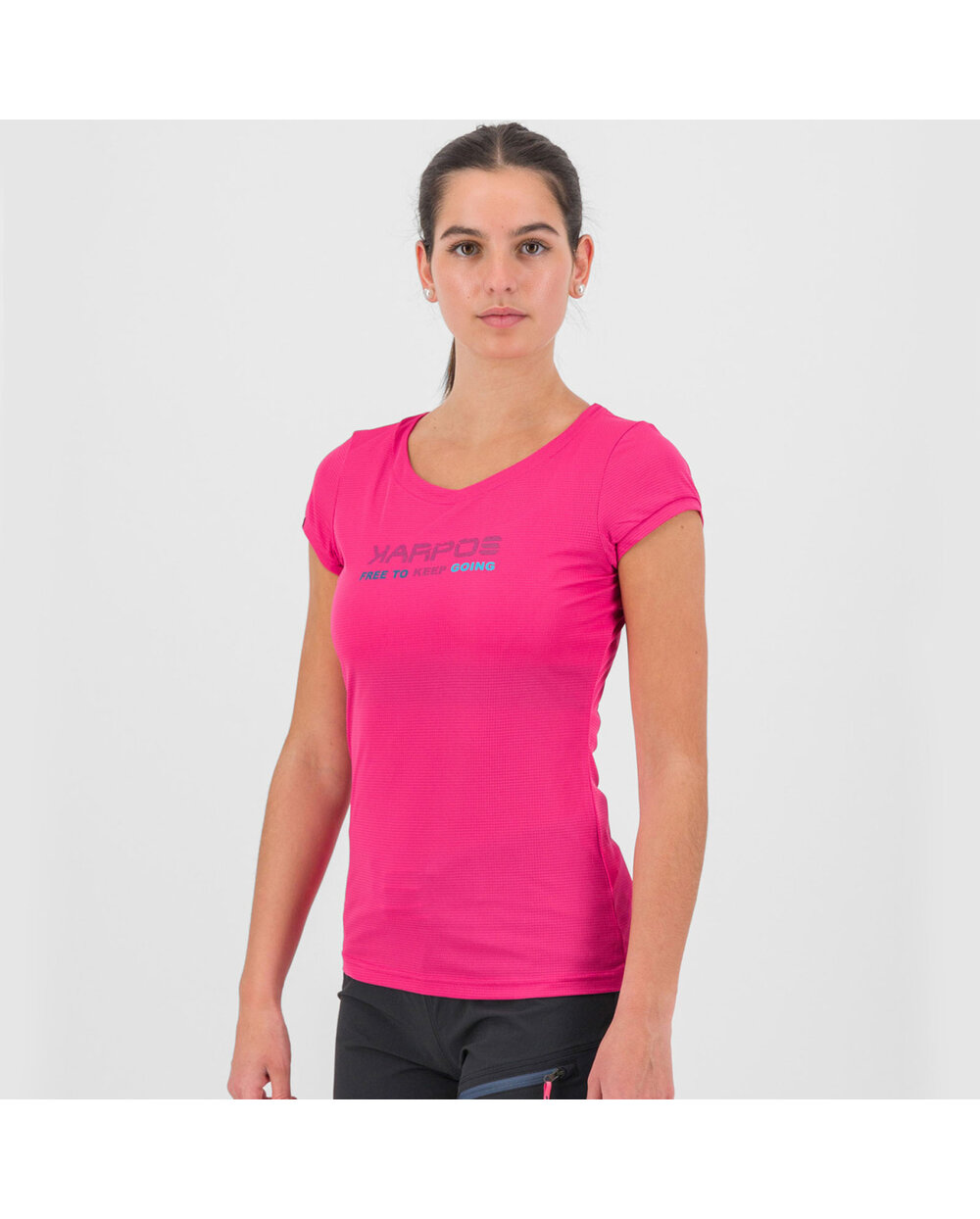 Ženska kolesarska majicaKarpos Val Federia vas bo ohranila suhe in hladne tudi v vročem vremenu. Izdelan je iz funkcionalnega materiala, ki odlično odvaja znoj s kože, prijetno hladi in ne ovira gibanja.