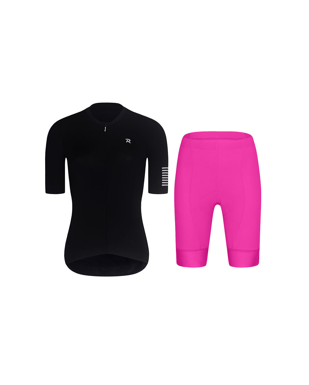 Ženski kolesarski komplet Rivanelle VICTORIOUS LADY + DYNAMIC ELITE je idealna izbira za kolesarke, ki želijo združiti eleganten videz, udobje in zanesljivo funkcionalnost med poletnimi vožnjami. Kombinacija črne majice s kratkimi rokavi in ciklamenastih kratkih hlač brez naramnic ustvarja stilsko opravo, ki bo izstopala na vsaki poti.